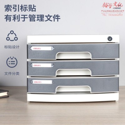 得力 8833 文件柜带锁桌面文件柜 (只) 浅灰色 SKU:yzwhyp824384