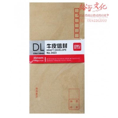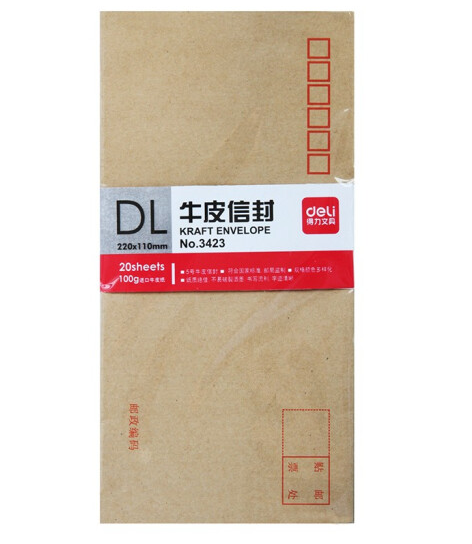 得力(deli) 20张5号牛皮纸信封 邮局标准信封220*110mm(1包装) 3423 SKU:yzwhyp824400
