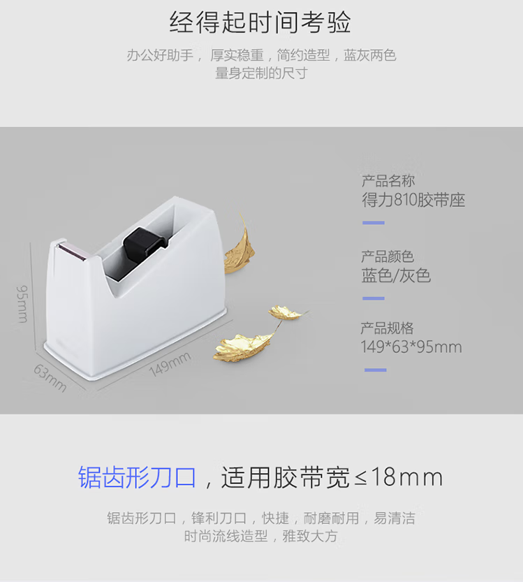 得力(deli) 810 时尚彩色胶带座/胶带切割器 胶带座胶纸座胶布机胶纸机胶带小号 灰色 1个 SKU:yzwhyp824460