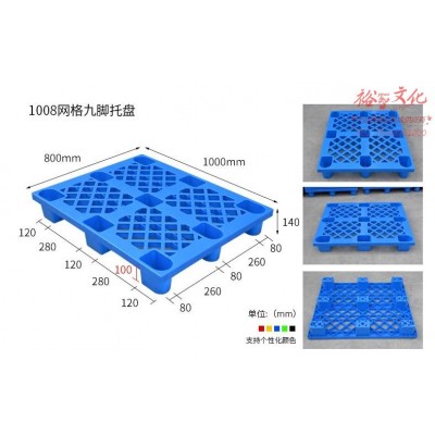 首页 > 建筑建材 > 装饰材料 > 叉车托盘 网格九脚塑料仓库托盘栈板 1000*800*140SKU:yzwhyp824764