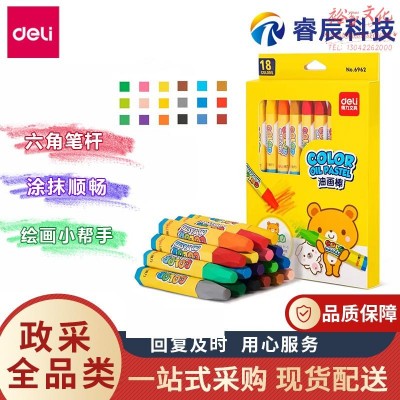 得力 6962 油画棒蜡笔18色彩色油笔六角杆无毒画画涂鸦(18支/盒)SKU:yzwhyp824787