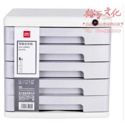 得力(deli)5层带锁手拉桌面文件柜 带索引标签抽屉资料收纳柜学科试卷分类收纳 浅灰色 9779SKU:yzwhyp824911