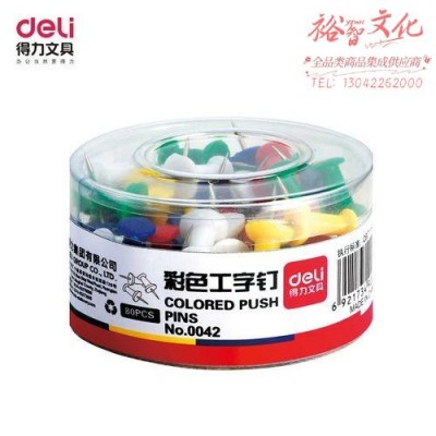 得力 0042 彩色工字钉80枚/筒彩色48筒/箱(单位:箱) SKU:yzwhyp824918