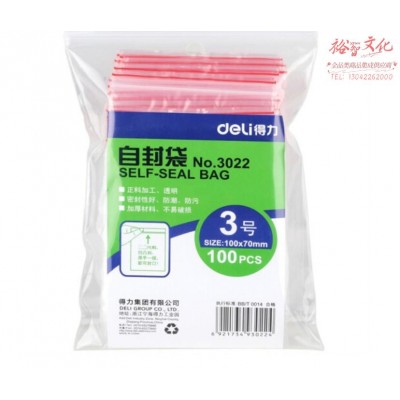 得力 3022 自封袋(透明)-3号(100个/包)100x70mm0.04mm SKU:yzwhyp825073