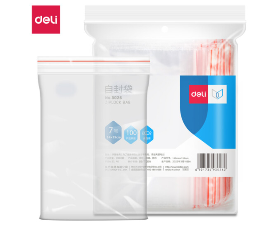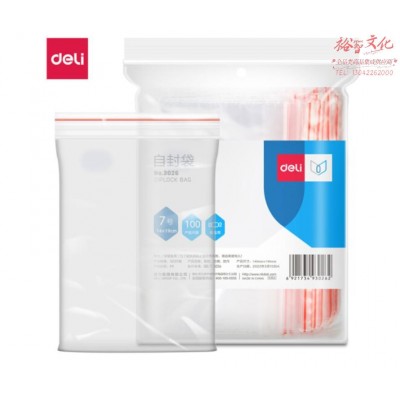 得力 3026 自封袋(透明)-7号(100个/包)200x140mm0.04mm SKU:yzwhyp825076