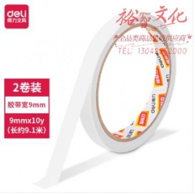得力30404棉纸双面胶带9mm*10y*80um(白)(2卷/袋) SKU:yzwhyp825094