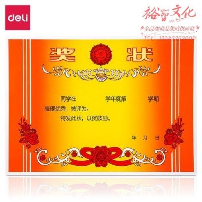 得力 24827 奖状(混)(50张/包)(单位:包) SKU:yzwhyp825115