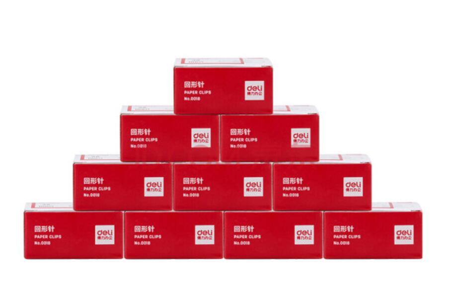 得力(deli) 0018 3#金属回形针 镀镍防锈曲别针 100枚/盒 10盒装 办公用品 SKU:yzwhyp825149