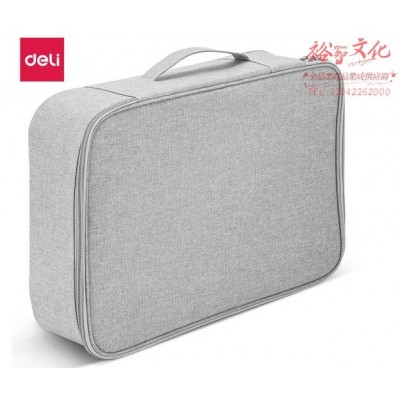 得力(deli)防水防尘证件收纳包 家用大容量多功能文件袋文件包事务包收纳箱内置PP隔板 双层 灰色 63758 SKU:yzwhyp825153
