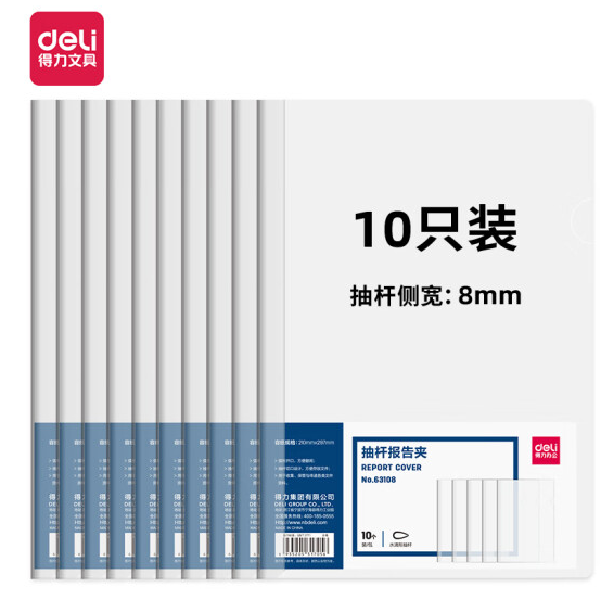 得力(deli)10只A4透明拉杆夹 8mm背宽水滴抽杆夹报告夹 学生考试收纳 63108SKU:yzwhyp825159