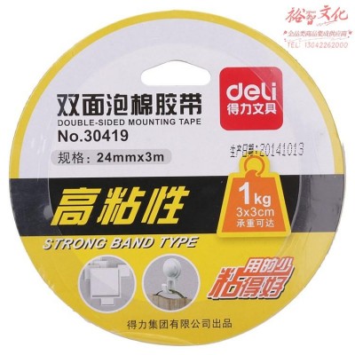 得力 30419 油性双面泡棉胶带24mm*3m*1mm白色36卷/盒(单位:盒)SKU:yzwhyp825308