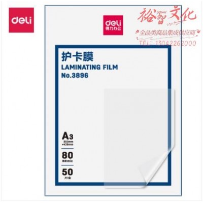 得力(deli) 3896 高透塑封膜 50张一盒 SKU:yzwhyp825405