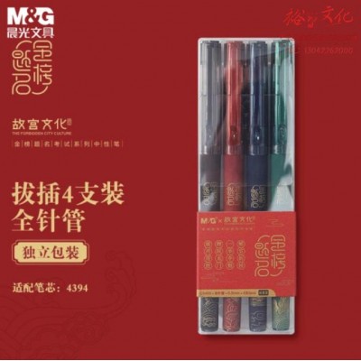 晨光文具0.5mm黑色中性笔 高颜值学生全针管签字笔 故宫金榜题名考试系列水笔 PP盒装4支 AGPC3403A SKU:yzwhyp825438