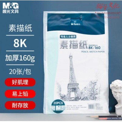 晨光文具8K/160g加厚素描纸 铅画纸 专业美术生画纸 初学者速写纸 美术写生纸 20张/包 APYMV635 新年礼物 SKU:yzwhyp825450