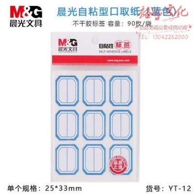 晨光 YT-12 自粘性标贴蓝色9枚*10/33*25mm(包) SKU:yzwhyp825504