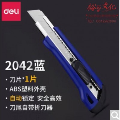 得力(deli) 大号美工刀 学生刀架 裁纸刀 壁纸刀 可换刀片 2042蓝色【卡装】SKU:yzwhyp825705