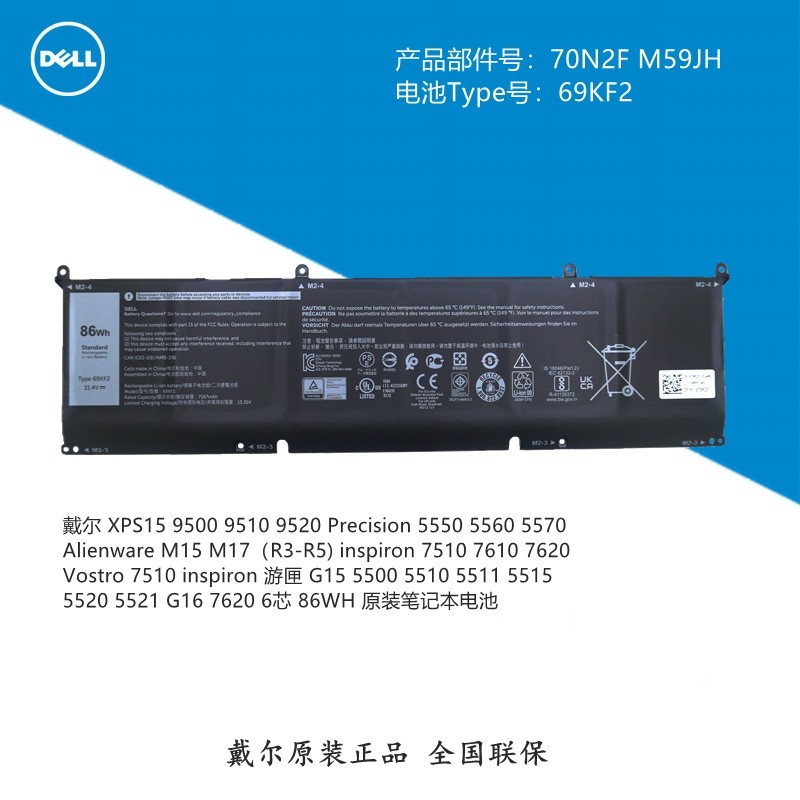 首页 > 电气设备 > 原电池和原电池组 > 戴尔 DELL XPS15 9500 9510 9520 Precision 5550 5560 5570 6芯 86WH 原装笔记本电池 69KF2SKU:yzwhyp825973