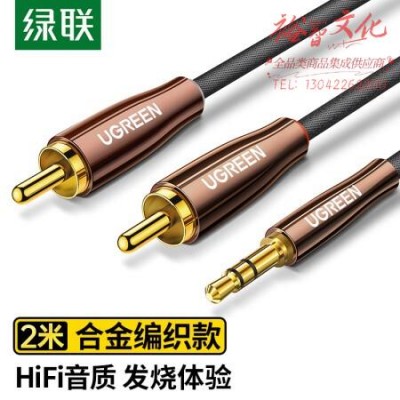 绿联 3.5mm转双莲花头2米音频线一分二 3.5转2RCA公对公连接线 电脑手机音箱功放低音炮转换线SKU:yzwhyp826113