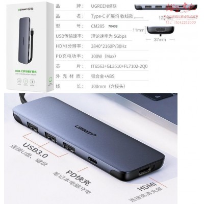 首页 > 信息化设备 > 数据线 > 绿联(UGREEN) Type-C扩展坞适用苹果华为电脑USBC转HDMI/VGA转换器3.0分线器 70408USB3.0分线器 HDMI 5合1SKU:yzwhyp826115