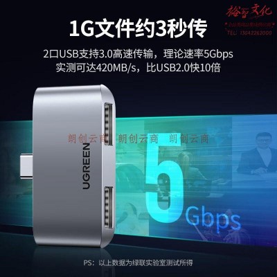 绿联 Type-C扩展坞 USB-C转接头分线器3.0HUB集线器直插式拓展坞适用苹果Macbook华为笔记本电脑转换器二合一SKU:yzwhyp826117