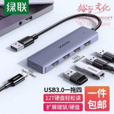 绿联 USB3.0分线器 扩展坞 高速4口集线器HUB拓展坞 适用笔记本电脑一拖多转换器转接头 Type-C供电口 0.15米SKU:yzwhyp826179