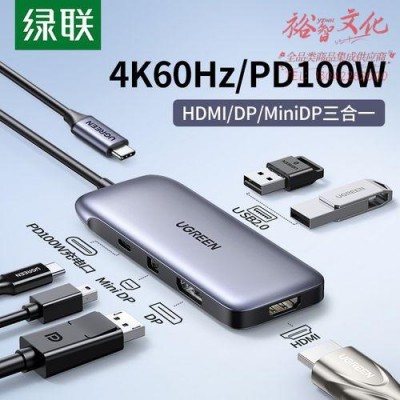 首页 > 信息化设备 > 数据线 > 绿联Type-C扩展坞USB-C转HDMI/DP/MiniDP转换器4K60Hz高清投屏拓展坞适用苹果华为笔记本电脑HUB分线器六合一SKU:yzwhyp826344