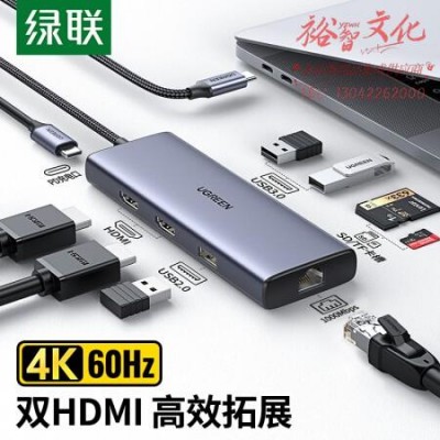 首页 > 信息化设备 > 数据线 > 绿联 Type-C扩展坞 USB-C转双HDMI三屏异显拓展坞千兆网线口转接头HUB分线器3.0 适用苹果笔记本转换器九合一 90119SKU:yzwhyp826427
