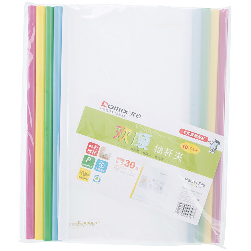 齐心 A813-K 欢颜报告夹 A4 抽杆式 30张 五色(10个装) 配 SKU:yzwhyp826532