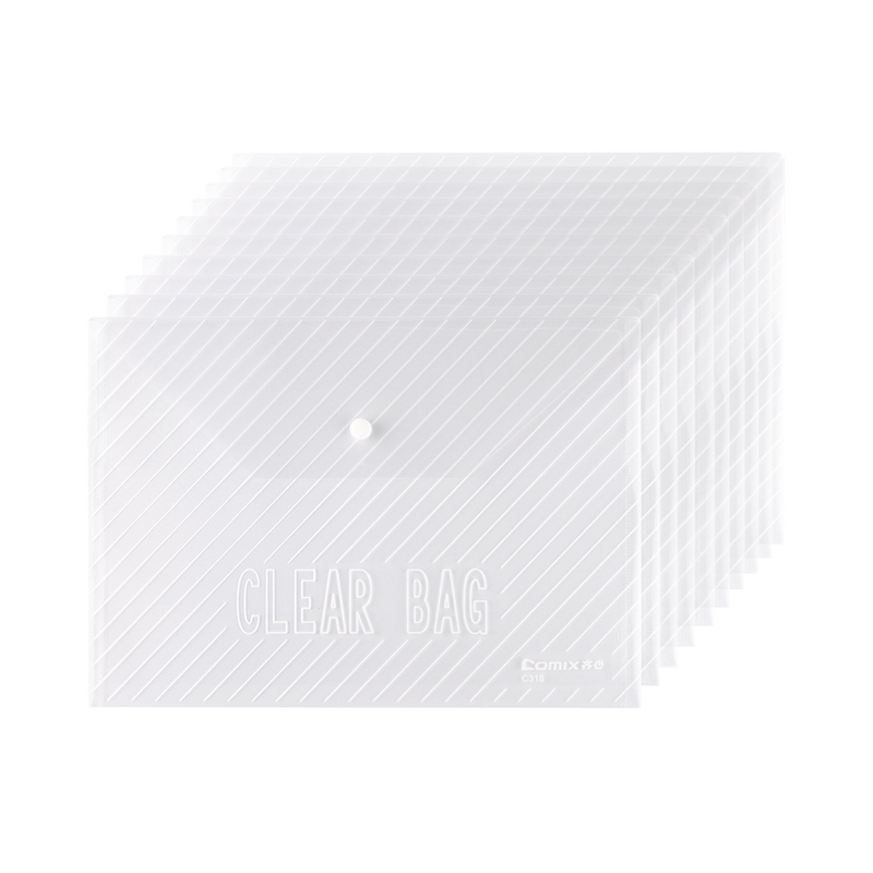 齐心 C318 巨划算经典条纹透明按扣袋 A4 20个/套 SKU:yzwhyp826535
