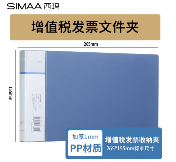西玛(SIMAA)9602PP 财务增值税发票夹 票据夹 收纳夹蓝单只装SKU:yzwhyp826621