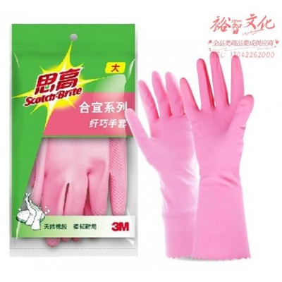 3M 橡胶手套 纤巧型防水防滑家务清洁 柔软内里洗碗手套大号 樱花粉SKU:yzwhyp827197