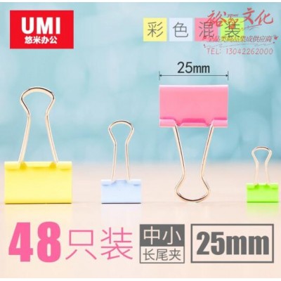 彩色长尾夹 鱼尾夹票夹燕尾夹资料夹 25mm 48只/筒 彩色(1筒)SKU:yzwhyp827306
