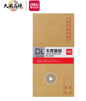 首页 > 办公用品 > 文具 > 得力(deli)60张5号牛皮纸信封 邮局标准信封220*110mm 33211SKU:yzwhyp827402