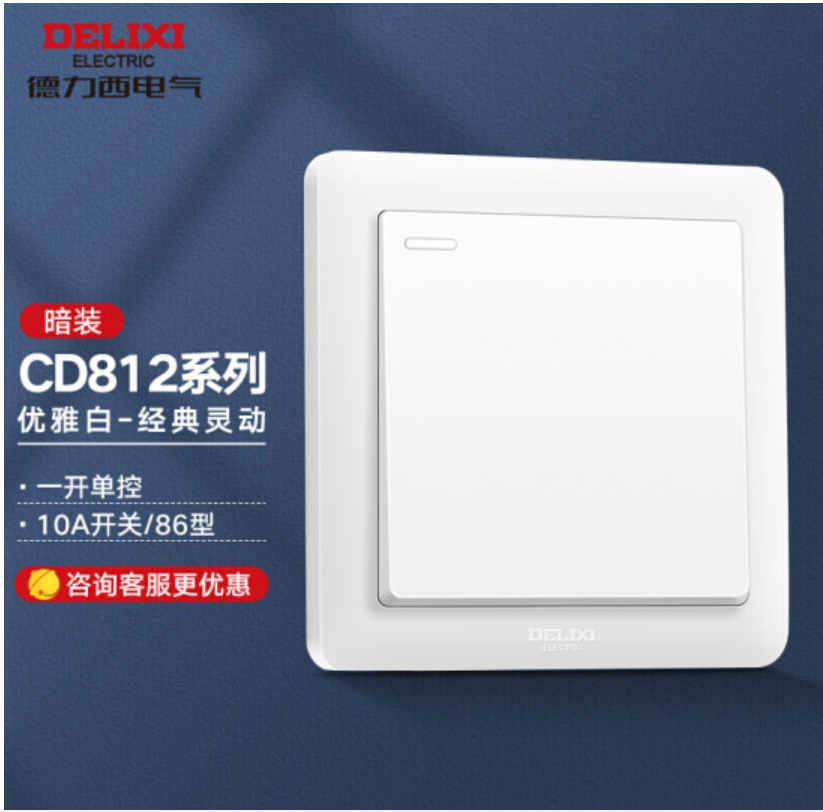 德力西(DELIXI)开关插座面板 CD812系列 单开一开单控开关 优雅白SKU:yzwhyp827774