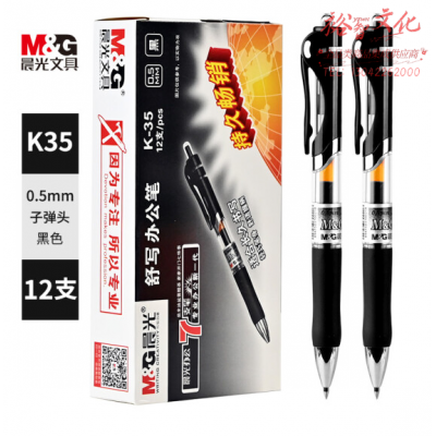 晨光 K35经典子弹头中性笔 0.5mm按动签字笔水笔 黑色 12支/盒 SKU:YZB100995
