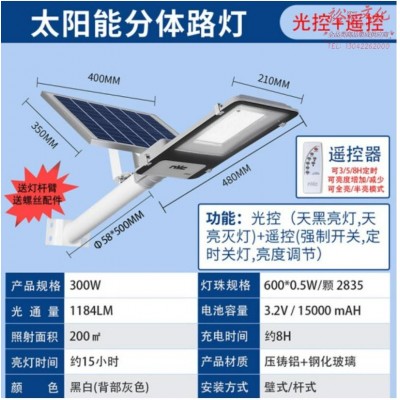 太阳能庭院灯大功率室外照明分体路灯高亮门柱庭院户外草坪射灯 新农村防水道路照明灯 300W-光控 遥控-照明面积约200㎡SKU:yzwhyp828122