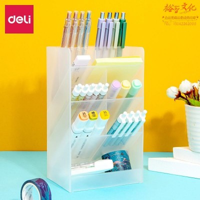 得力(deli)双联斜插式笔筒 桌面收纳笔架 多功能化妆收纳盒 透明8934SKU:yzwhyp828414