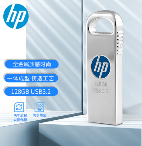 惠普(HP)128GB USB 3.2 Gen 1 U盘 x306w 银色金属外壳 电脑车载商务办公高速学生优盘SKU:yzwhyp829460