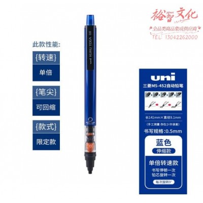 三菱日本UNIKURUTOGA自动铅笔 自动旋转活动铅笔写不断小学生绘图考试铅笔 经典蓝(M5-452) SKU:yzwhyp829910