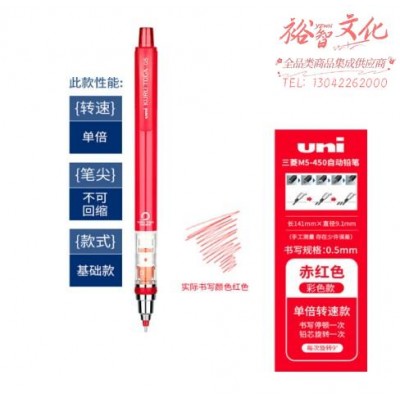 uni三菱日本UNIKURUTOGA自动铅笔 自动旋转活动铅笔写不断小学生绘图考试铅笔 基础红(M5-450) 单支价 SKU:yzwhyp830015