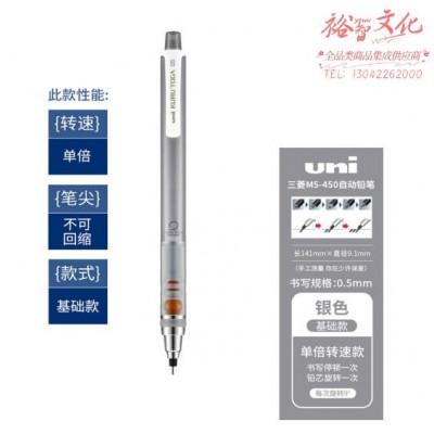 三菱日本UNIKURUTOGA自动铅笔 自动旋转活动铅笔写不断小学生绘图考试铅笔 基础银(M5-450) SKU:yzwhyp830051