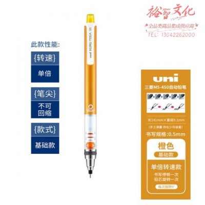 三菱日本UNIKURUTOGA自动铅笔 自动旋转活动铅笔写不断小学生绘图考试铅笔 基础橙(M5-450) SKU:yzwhyp830190
