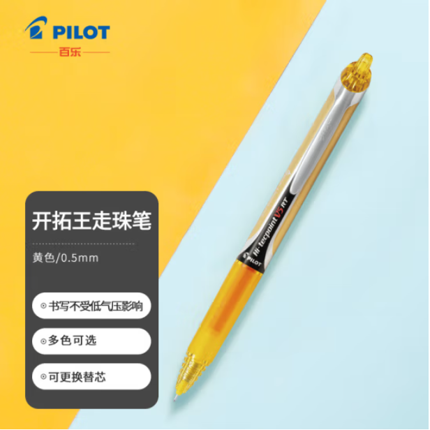 百乐 BXRT-V5 黄色按动中性笔 0.5mm签字笔水笔 12支/盒 SKU:yzwhyp830380