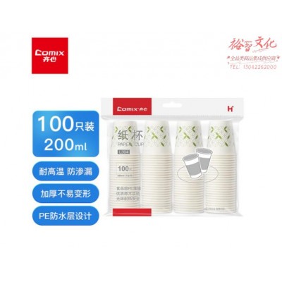 齐心(Comix)加厚一次性水杯L304纸杯200ml 7安 100个装 SKU:yzwhyp830558