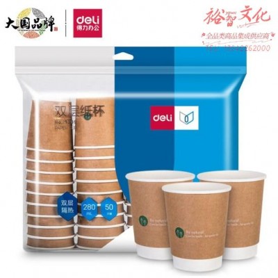 得力(deli)280ml纸杯 一次性杯/水杯 牛皮纸双层加厚 贵宾接待 50个装 19209 SKU:yzwhyp830562