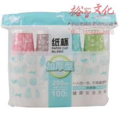 得力 9563 纸杯(混)(100个/袋)250ml240g五星纸 18gPE膜 SKU:yzwhyp830575
