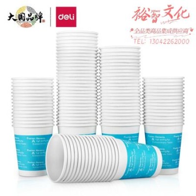得力(deli)9561纸杯 250ml(9盎司)加厚一次性杯子水杯 100只装 蓝色 SKU:yzwhyp830582