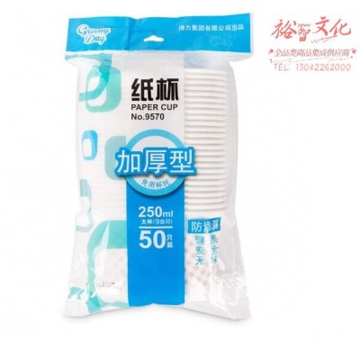 得力(deli) 9570纸杯 250ml(9盎司)加厚一次性杯子水杯 50只装 SKU:yzwhyp830584