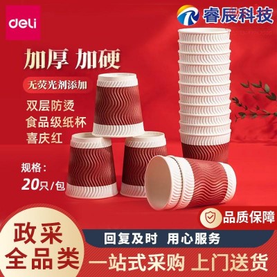 得力 19206 纸杯一次性隔热加厚纸杯红色双层防烫纸杯咖啡杯茶杯热饮杯子(20只/包) SKU:yzwhyp830605