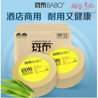 斑布酒店商用本色大盘纸卫生卷纸厕纸 竹纤维无漂白 3层600g*12卷 SKU:yzwhyp830990